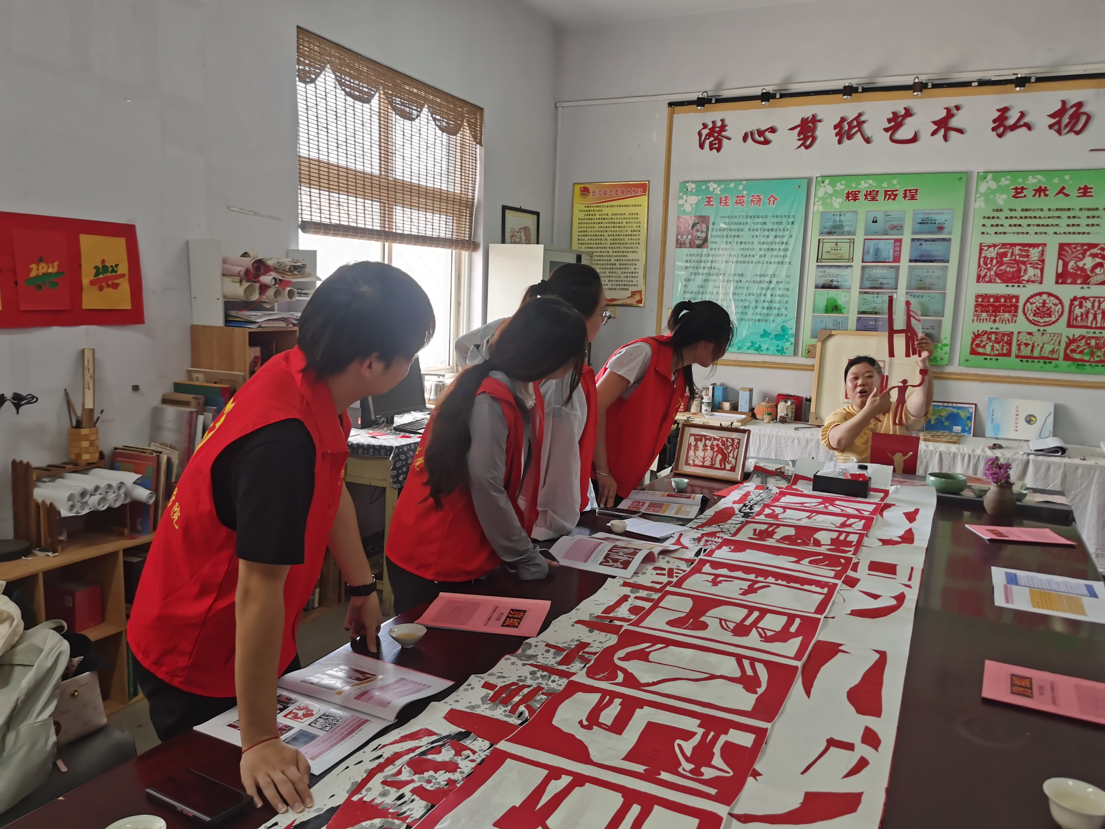实践团首站来到合沟中学,在这里,队员们与国家级非物质文化遗产徐州剪纸代表性传承人王桂英老师的弟子于敏老师一同学习剪纸艺术。剪刀在纸上翻飞,一幅幅精美的剪纸作品逐渐成型,于敏老师向大家讲述了王桂英老人“潜心剪纸艺术,弘扬民间文化”的感人事迹。从老人对剪纸艺术的坚守中,队员们深刻感受到了中华优秀传统文化的魅力,也体会到了非遗传承对于增强文化自信、铸牢中华民族共同体意识的重要意义。