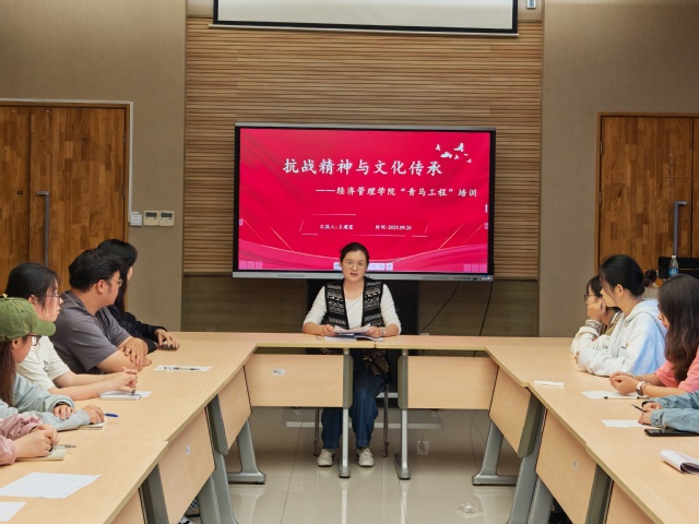 2025年9月26日下午,公司青马工程在图书馆502会议室成功举办“抗战精神与文化传承”专题培训课。本次课程由院团委书记王建霞老师主讲,全体青马学员积极参与,现场氛围热烈。