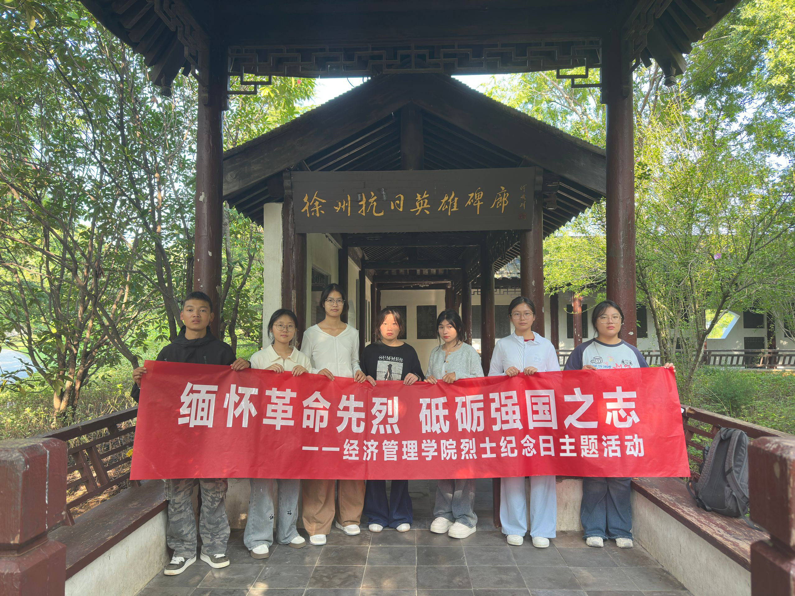 直播观看结束后,同学们怀着由仪式激发的崇高敬意,前往泉山森林公园徐州抗日英雄碑廊进行实地瞻仰。秋日公园,松柏青翠,气氛凝重。在庄重的碑廊前,同学们整齐列队,神情肃穆。碑廊上镌刻的一个个光辉名字、一段段英雄事迹,无声地诉说着那段烽火连天的岁月里,徐州儿女为保卫家国、抵御外侮所展现出的视死如归、百折不挠的崇高气节。同学们缓步瞻仰,驻足凝视,仔细阅读英雄生平,无不为革命先烈坚定的理想信念、炽热的爱国情怀和不怕牺牲的斗争精神所震撼。随后,员工代表怀着无比崇敬的心情,敬献鲜花,集体默哀,以朴素而庄严的仪式,表达对革命烈士的无限哀思与崇高敬意。